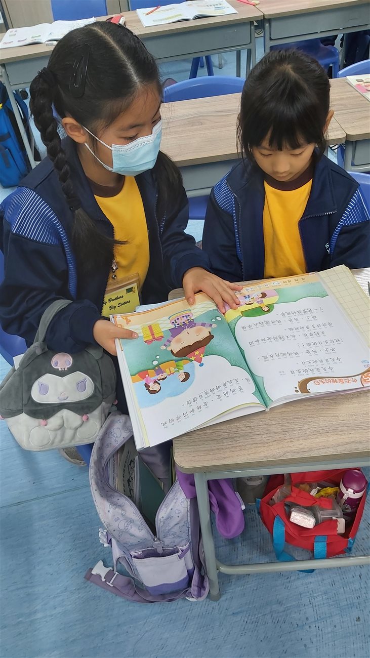 為鼓勵本校學生服務他人,同時協助低年級學生提升中文或英文讀寫能力,本校培訓愛心滿滿及富責任感之三至六年級學生成為《中文小老師》及《Big Brothers Big Sisters》,在小息期間教導學生溫習默書範圍或重溫近期學習的課文內容。